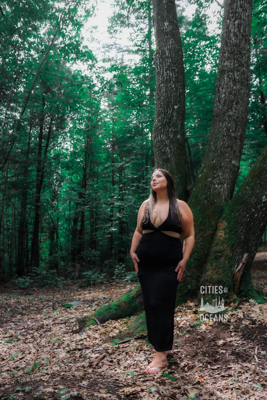The Laguna Beach Dress is a slinky little black halter dress with cut out details at the waist. It is perfect for a day in the sun. Wear it as a beach dress or dress it up for a night out. Available in sizes S (0-4), M (6-8), L (10-12).